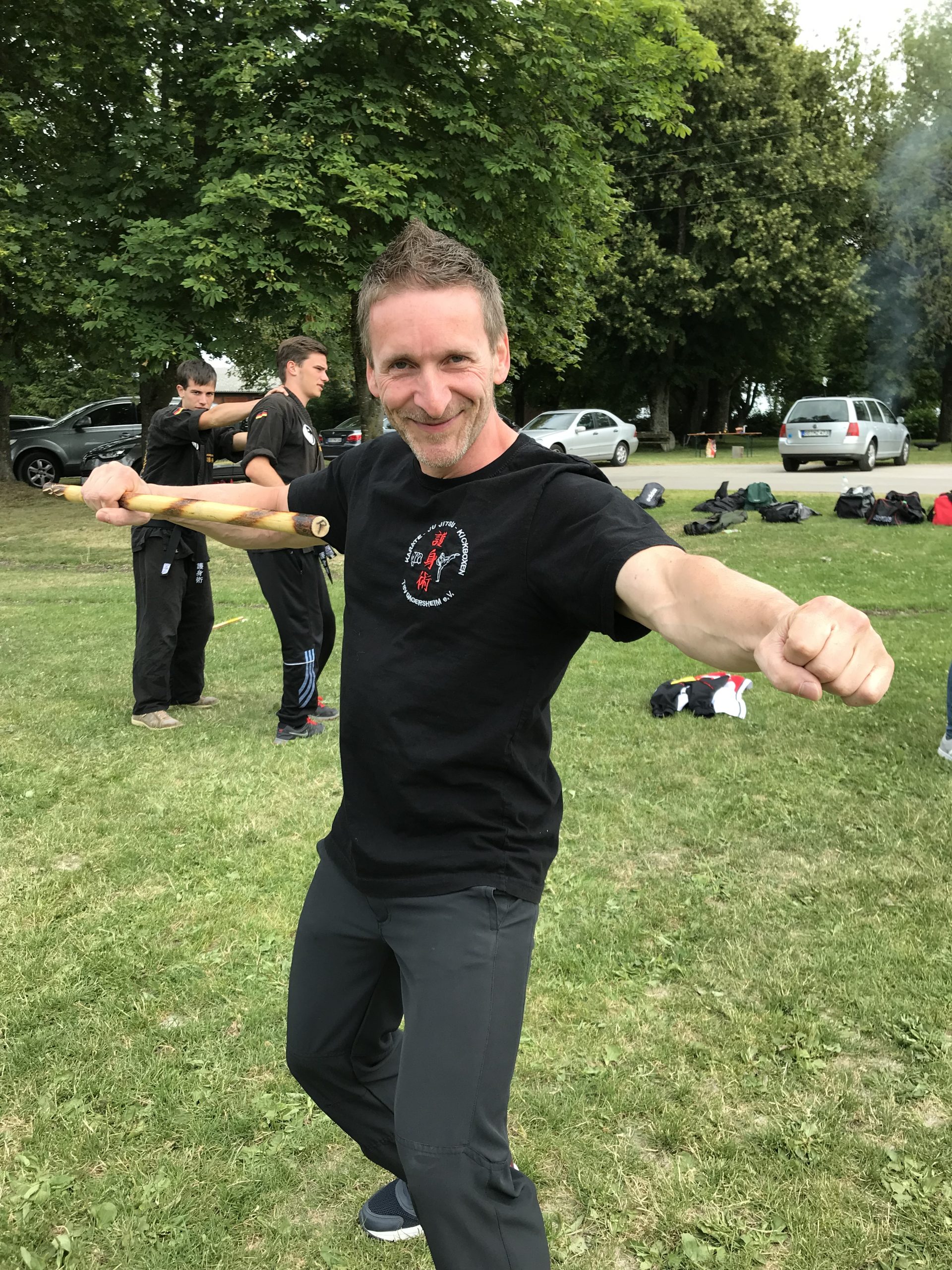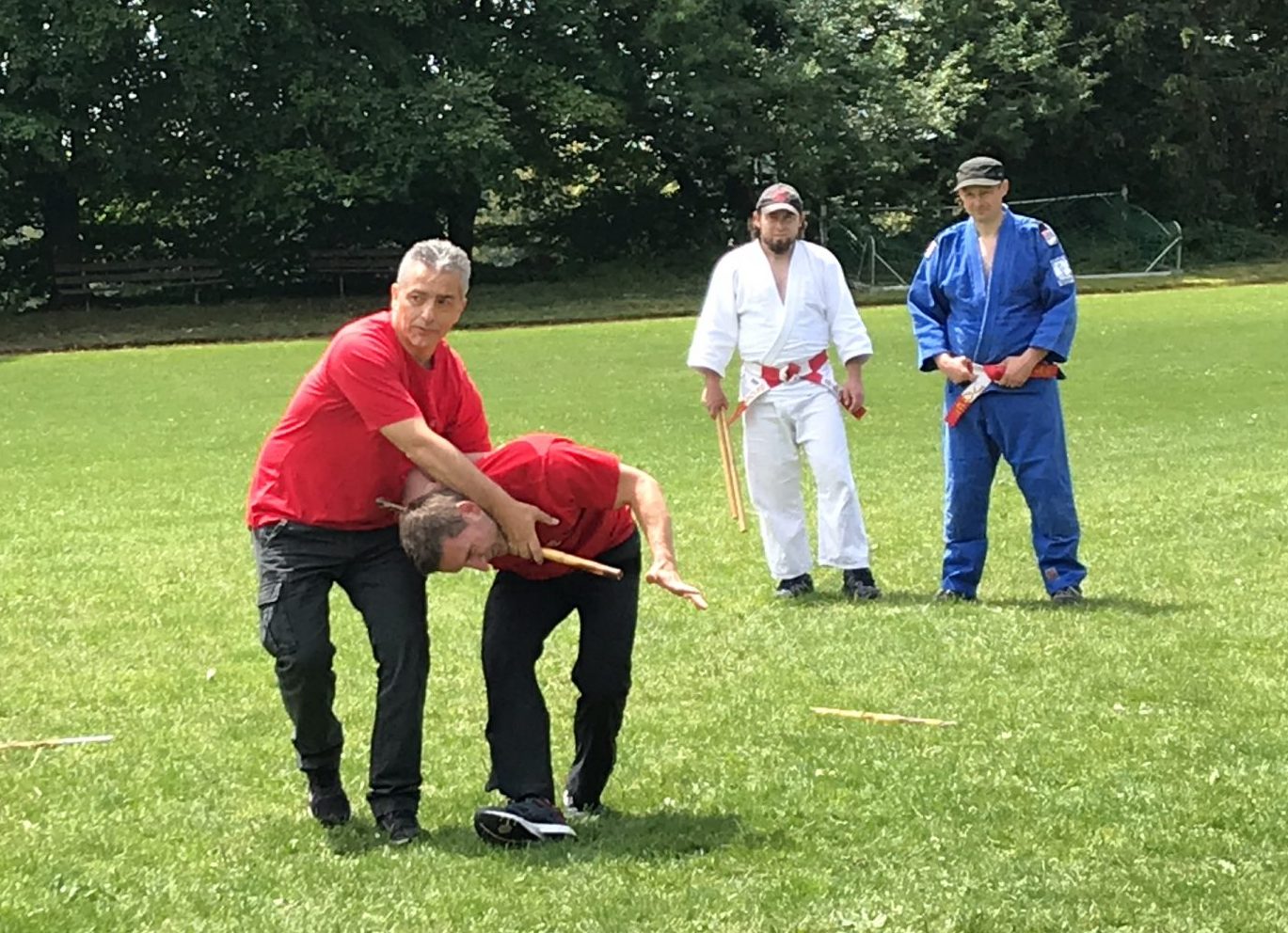 IFAK Präsident Soke Siegfried Lory 10. Dan übernahm die Ju Jitsu Trainingseinheiten. Hier wurde die Verteidigung gegen Stockangriffe und bei Pistolenbedrohung trainiert. Weiterhin wurden Abwehrtechniken trainiert, die gegen verschiedenste Angriffe eingesetzt werden können. Somit sind diese Techniken sehr universell einsetzbar. Weiterhin wurde die Verteidigung mit Hilfe eines Kubotans, einem ca. 12 cm langen Schlüsselanhänger unterrichtet.