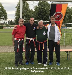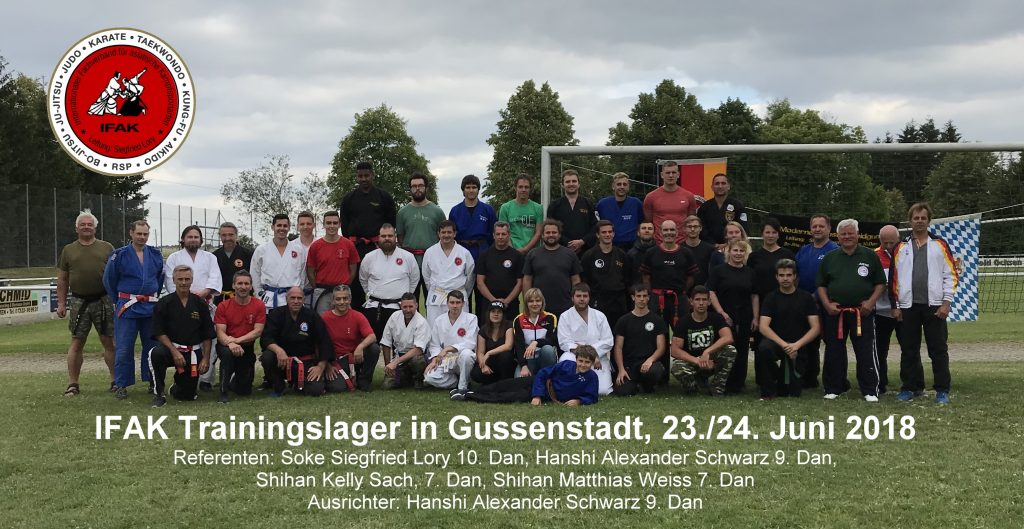 Am Wochenende vom 23.-24. Juni 2018 fand in Gussenstadt bei Hanshi Alexander Schwarz das diesjährige IFAK Trainingslager statt. Dieses Jahr standen 4 hochkarätige Referenten aus den Bereichen Ju Jitsu, Hanbo Jitsu, Chu-Do Streetfighting und Nervendruckpunkte auf dem Programm.